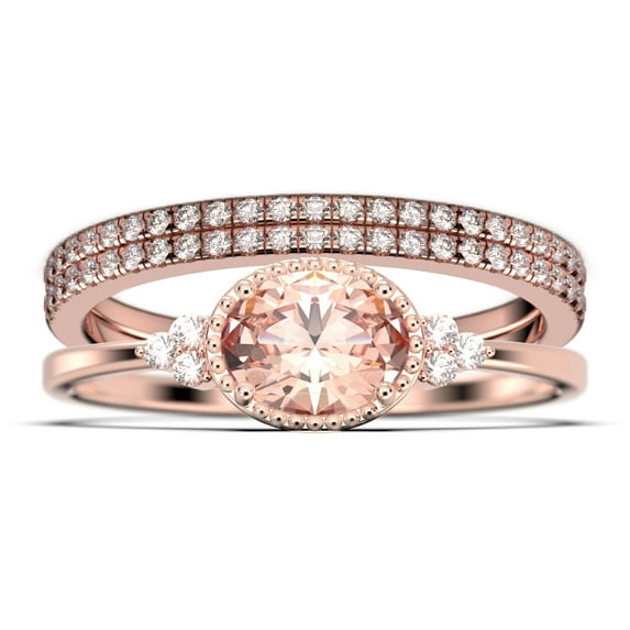 Hero image 0 of Gorgeous Art Nouvea 2.40 Carat Oval Cut Morganite And Diamond Moissanite Affordable Engagement Ring, Moissanite Wedding Ring, Two Matching Band In 10K Solid Rose Gold Gift For Her, Promise Ring, 0 of 4