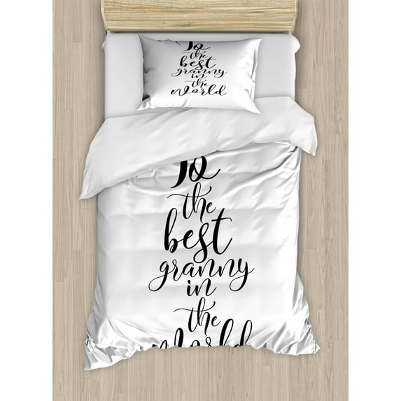 Hero image 0 of Grandma Twin Size Duvet Cover Set, To the Best Grandmother in the World Quote Monochrome Hand Lettering Illustration, Decorative 2 Piece Bedding Set with 1 Pillow Sham, Black White, by Ambesonne, 0 of 3