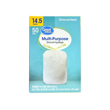 Great Value 14.5-Gallon Multipurpose Drawstring Trash Bag, Unscented, 50 Bags