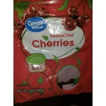 Great Value Sweetened Dried Cherries are soft, chewy snacks for people who are looking to make smarter choices but still want sweet treats. The light hint of sugar is just enough to balance out the cherries' natural tart flavor and dried just long enough to be a perfect balance of juicy and chewy. Add them to your morning oatmeal or yogurt for an extra burst of nutrients with your breakfast. You can also snack on them by the handful throughout the day for a flavorful kick that tastes good and is good for you. These dried cherries are high in fiber and in Vitamin A, making them a great choice for any lifestyle. They come in a resealable container so they stay fresh longer. Mix them with a spoonful of peanut butter on toast for a quick riff on a classic PB&J. Great Value Sweetened Dried Cherries are a satisfying sweet treat for any time of the day.