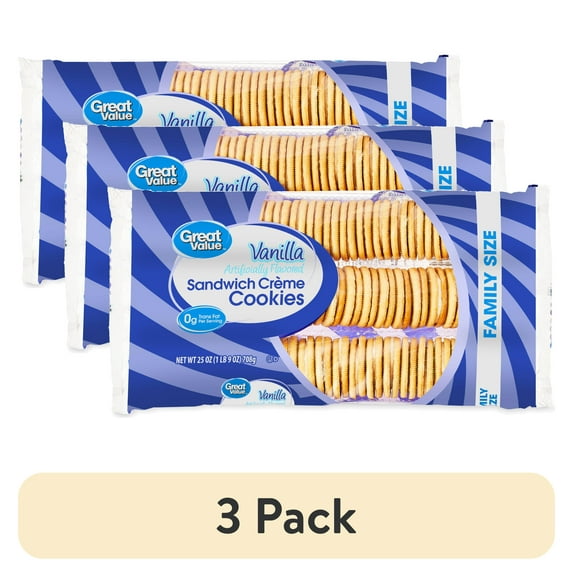 (3 pack) Great Value Vanilla Creme Flavor Sandwich Cookies, 25 oz