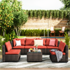 654.1 out of 5 Stars. 65 reviewsShipping, arrives in 3+ daysClearance ELPOSUN 7 Pieces Patio Furniture Set All Weather Outdoor Sectional Sofa, Outdoor Modern Sectional Furniture Wicker Couch with Glass Coffee Table, Thicken Red Cushions, Water Resistant $384.85 Was $681.89