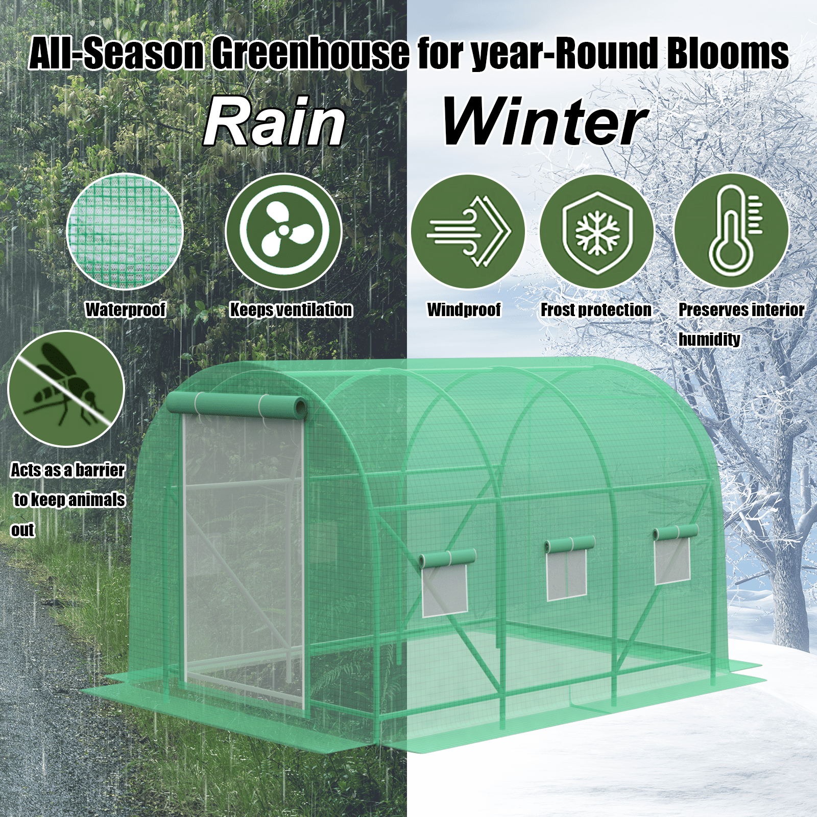 - Our Greenhouse No matter how hard the weather is, we are got you covered with this durable greenhouse to shield against all manner of foul conditions, from rain, wind, frost, sun and snow.