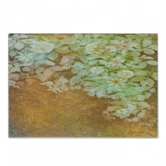 Hero image 0 of Grunge Cutting Board, Flowers and Leaves Vintage Painting on Blur Paper Background Floral Art Print, Decorative Tempered Glass Cutting and Serving Board, Small Size, Green Mustard, by Ambesonne, 0 of 1