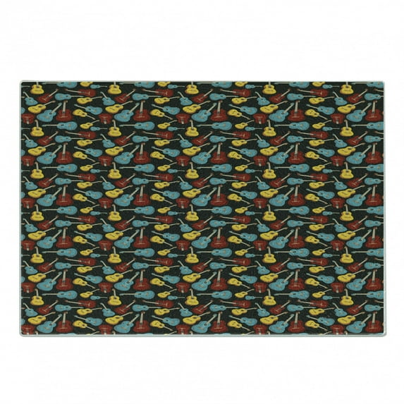 Hero image 0 of Guitar Cutting Board, Antique Wooden Acoustic Guitars Illustration Folk Country Music Flamenco Retro Style, Decorative Tempered Glass Cutting and Serving Board, Small Size, Multicolor, by Ambesonne, 0 of 1