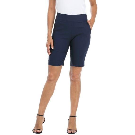 Hero image 0 of HDE Pull On Bermuda Shorts For Women Mid Rise 10" Inseam Shorts with Pockets Navy - L, 0 of 6