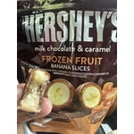 - Frozen bananas with caramel-flavored coating covered in Hershey’s Milk Chocolate and caramel-flavored coating