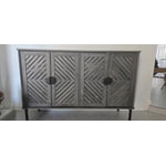 Decorative Buffet Cabinet- This accent storage cabinet is crafted with a Hollow panel design on 4 doors, adding a unique Bohemian style to your home. Combined with Black handles and base on the doors, the sideboard looks elegant and outstanding