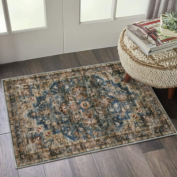 Hero image 0 of HOMERRY 2' x 3' Entryway Area Rug for Living Room Floral Geometric Small Rug Boho Indoor Accent Rug, Blue/Brown, 0 of 7