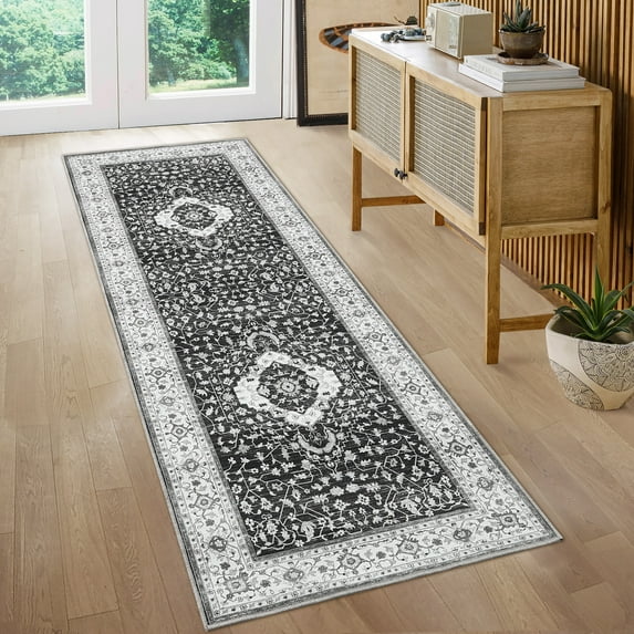 Hero image 0 of HOMERRY Runner Area Rug 2' x 6' Floral Washable Kitchen Runner Rugs Modern Tribal Throw Rugs with Rubber Backing for Living Room, Gray/Black, 0 of 5