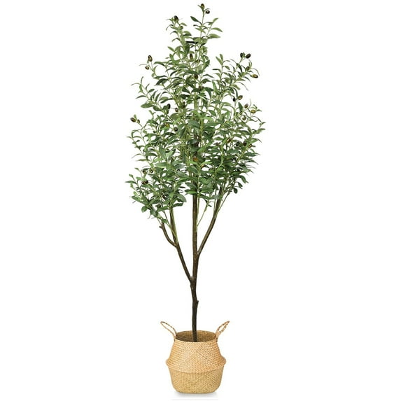 HOMLUX 6ft Artificial Olive Tree with Woven Seagrass Plant Basket