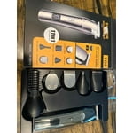 This was a handy and portable trimmer. It came with a nose, trimmer, ear trimmer, body hair trimmer shaper edger was great for travel. It came 100% charged and ready to go. It came with a USB-C cable, and stand for all the pieces to store on a counter. I liked how it fit well in my hand and was easy to use. One of the challenges was replacing the heads, but once I got the hang of it, that was easy to swap. Highly recommend.