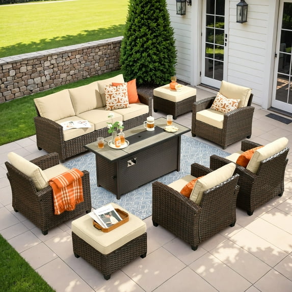 15 out of 5 Stars. 1 reviewsShipping, arrives in 3+ daysSophia & William 8 Pieces Wicker Patio Furniture Set with 56" Fire Pit Table 9-Seat Outdoor Conversation Set , Beige $1,499.99