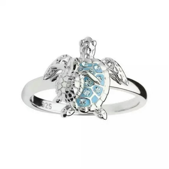 Hero image 0 of HOOUN Gold Sea Turtle Ring Crystal Stone Pendant Necklace Party Jewelry Set Gift Rings-04# Silver Turtle Ring-7, 0 of 3