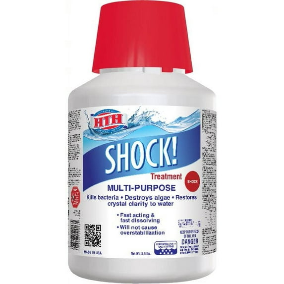 - Contains 5.5lbs of HTH Shock! Treatment for swimming pools