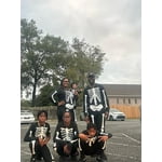 - : Features playful skeleton bone graphics.