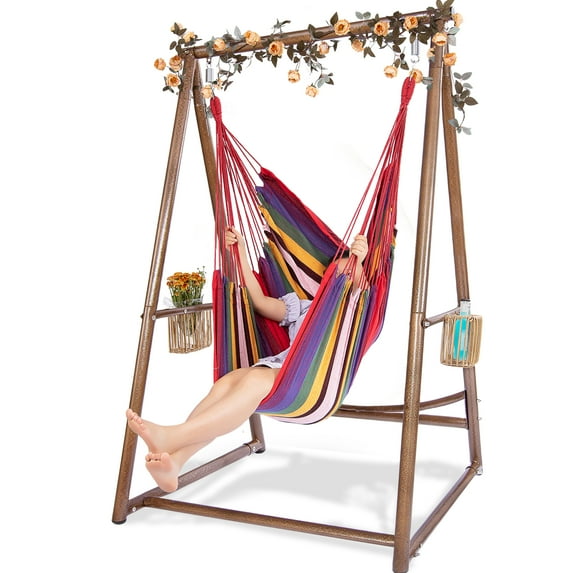 YOXIFOC Durable Hammock Chair with Two Holders, CoffeeYOXIFOC Durable Hammock Chair with Two Holders CoffeeHammock Chair Hanging Rope Swing Stand Set Two Holders Heavy Duty Hanging Stand Three Hooks Multi Use Indoor Outdoor Patio Yard Garden WhiteHammock Chair Hanging Rope Swing Stand Set Two Holders Heavy Duty Hanging Stand Three Hooks Multi Use Indoor Outdoor Patio Yard Garden GreyYOXIFOC Heavy Duty Hammock Chair with Stand Set Black
