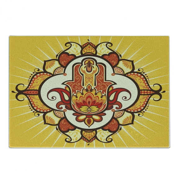 Hero image 0 of Hamsa Cutting Board, Sun Inspired Design Aura Energy Yoga Mantra Theme with Ornaments, Decorative Tempered Glass Cutting and Serving Board, Small Size, Yellow Orange Brown, by Ambesonne, 0 of 1