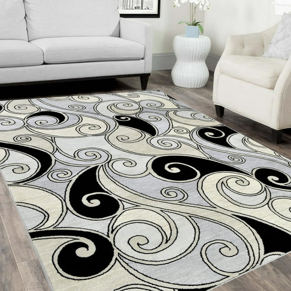 Hero image 0 of Handcraft Rugs-Swirls Rugs/Luxury Livingroom Modern Soft/Smooth-Silver/Gray/Black and White, 0 of 9