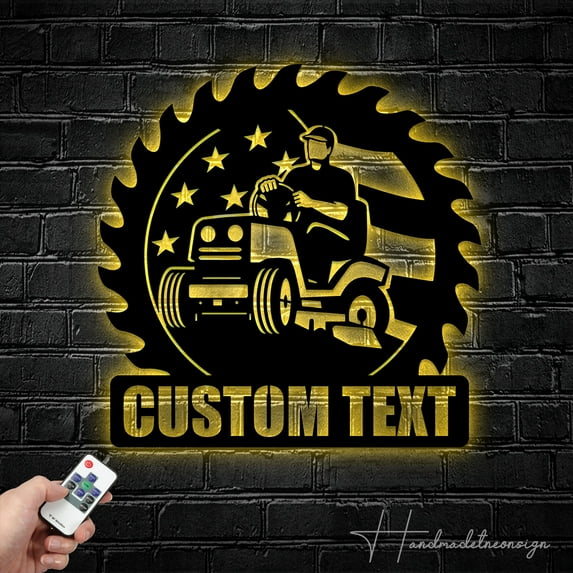 Handmadetneonsign Personalized US Lawn Mower Metal Wall Art LED Light - Custom Ride on Lawnmower Sign