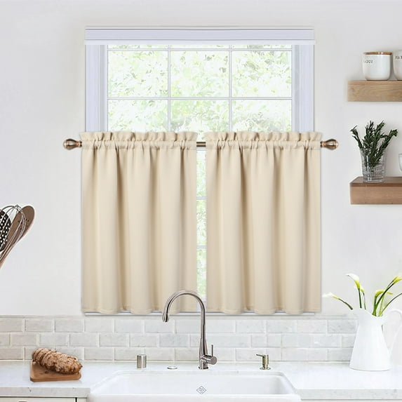 Hero image 0 of Haperlare 26"W x 24"L Blackout Kitchen Curtain Solider Cafe Curtain for Bathroom Dining Room, Beige, 2 Panels, 0 of 7