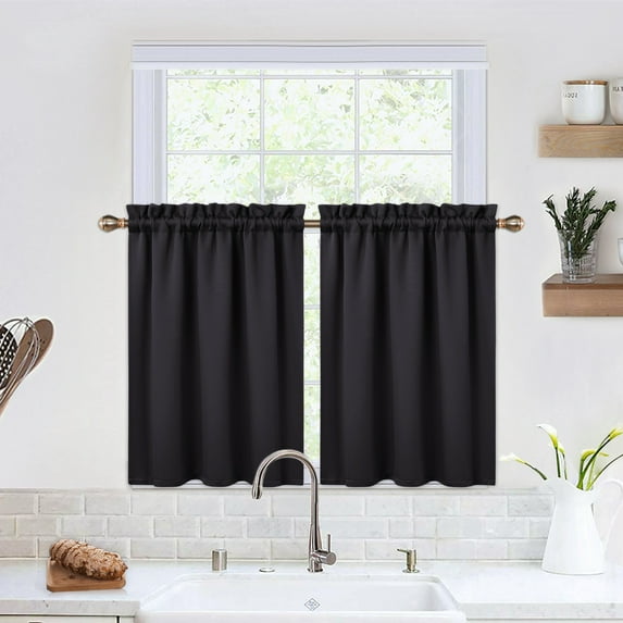 Hero image 0 of Haperlare 26"W x 30"L Farmhouse Kitchen Curtains Blackout Tier Curtains with Rod Pocket for Bathroom Cafe Dining Room, Black, 2 Panels, 0 of 7