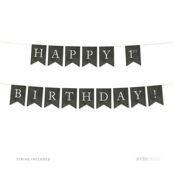 Need a unique vintage chalkboard happy 1st birthday! banner idea? These party banners are the simplest way to add instant affordable décor to any party celebration. Our colorful and unique party banner is made from quality cardstock to add a fun custom touch to your party theme celebration. Avoid the hassle and costly expense of trying to make your own printable party banner on poor quality paper. This DIY party banner kit has everything you need to assemble the perfect party theme. Each party banner kit includes banner buntings and string.