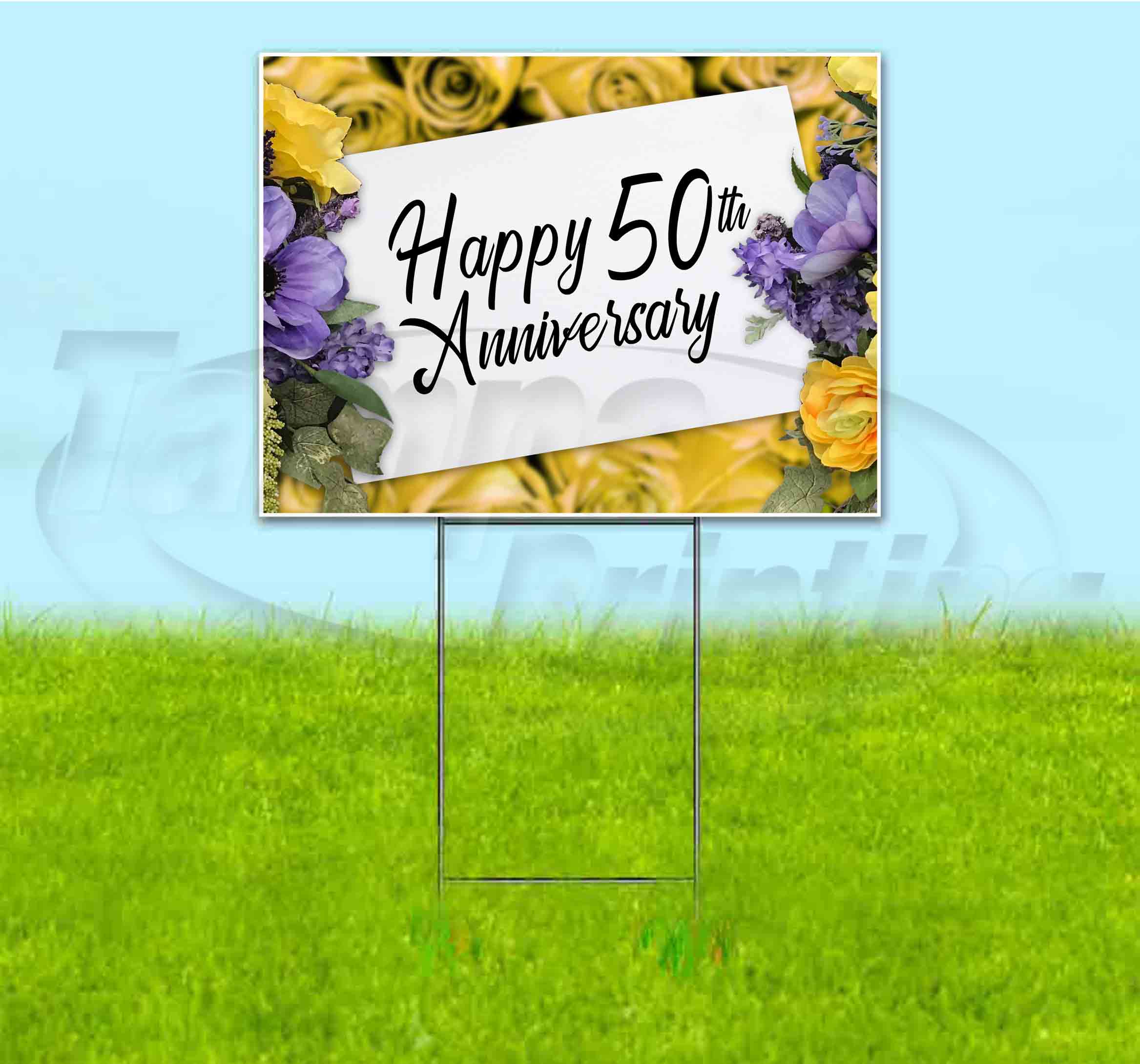 Happy 50Th Anniversary (18" x 24") Yard Sign, Includes Metal Step Stake
