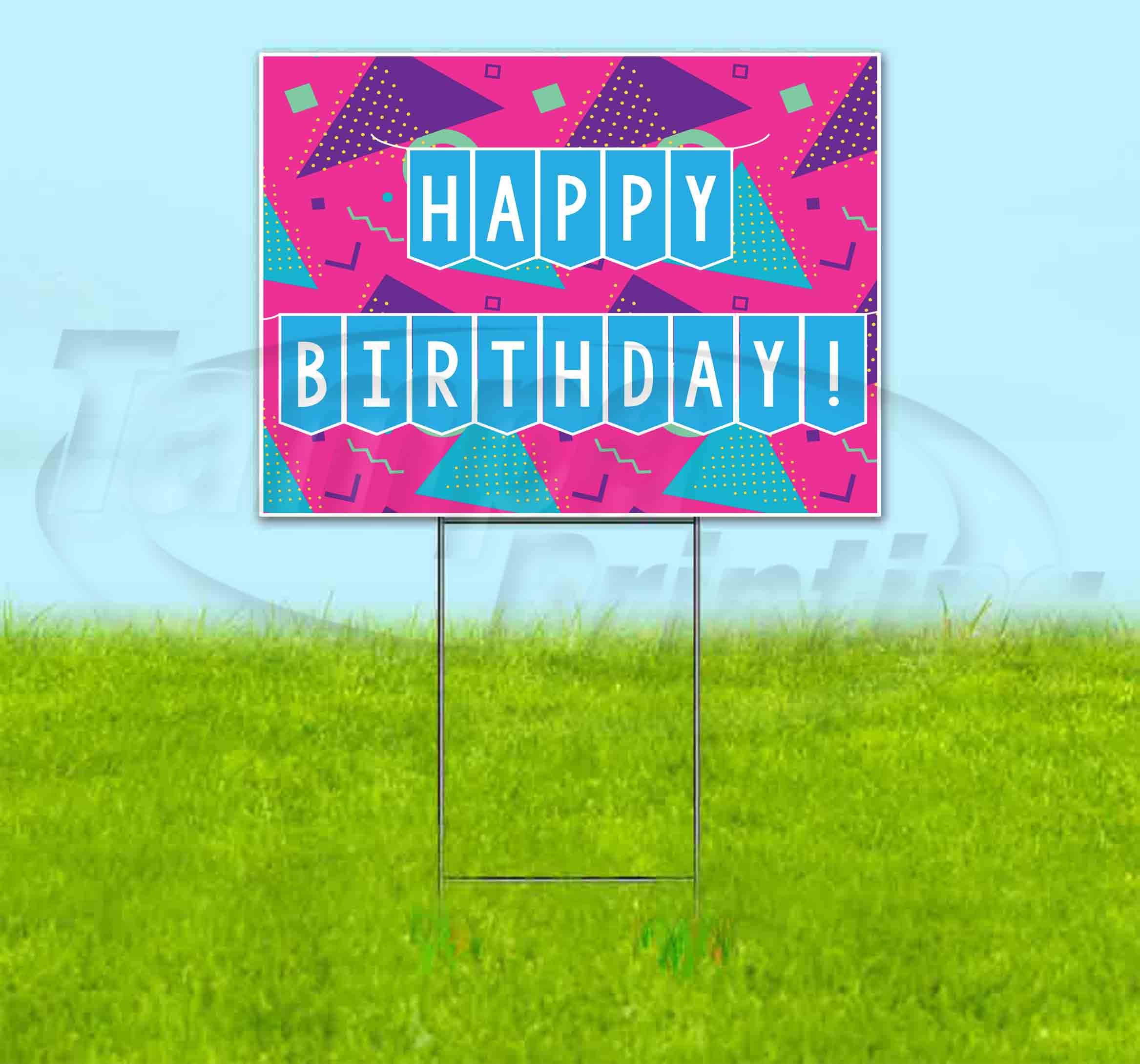 Happy Birthday (18" x 24") Yard Sign, Includes Metal Step Stake