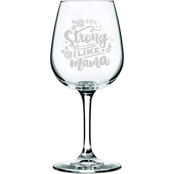 Hero image 0 of Happy Mother's Day Etched 12.75oz Libbey Wine Glass Strong Like My Momma w Flowers, 0 of 1