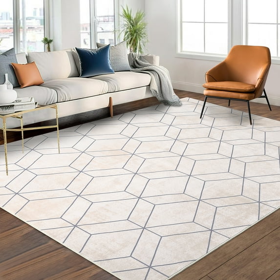 Hero image 0 of Hasoo 5' x 7' Modern Geometric Area Rug Indoor Easy-Cleaning Rug Non Shedding Bedroom Rug for Home Office, Beige, 0 of 5