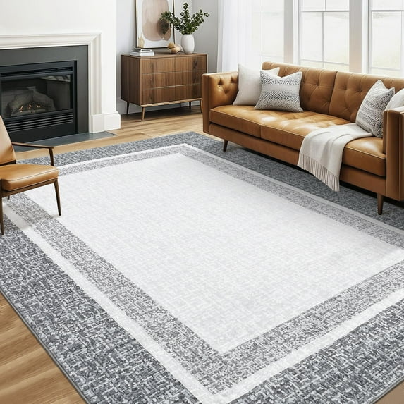 Hasoo Area Rugs for Living Room Washable 5x7 Rugs Chic Geometric Style Border Rug for Bedroom Dining Room Throw Indoor Carpet Gray