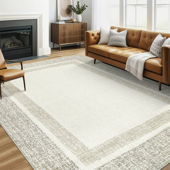 Hasoo Area Rugs for Living Room Washable 8x10 Rugs Chic Geometric Style Border Rug for Bedroom Dining Room Throw Indoor Carpet Beige