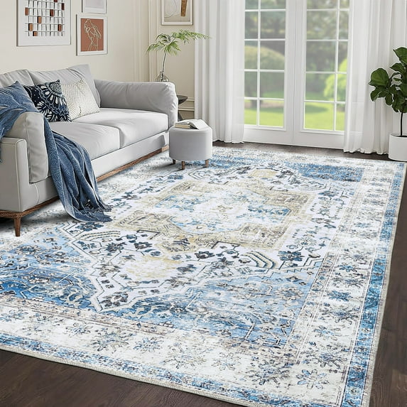 Hero image 0 of Hasoo Large Area Rug 9' x 12' Rug for Living Room Blue Washable Rug Indoor Floor Cover Carpet Soft Foldable Accent Rug, 0 of 6