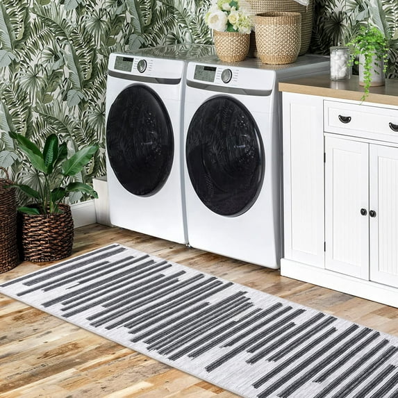Hero image 0 of Hasoo Modern Rug Geometric Lines Area Rug for Living Room Bedroom Kitchen Dining Room Home Office Floor Rug 2' x 6', Beige/Black, 0 of 6