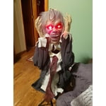 - Animated Features: This 20-inch animatronic ghoul activates with sound and touch, causing its head to pop up, eyes to light up red, and haunted music to play.