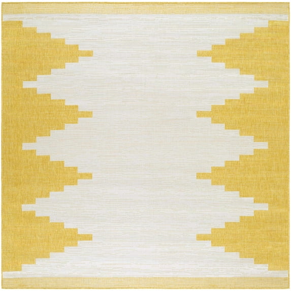Hauteloom Djugun Outdoor Area Rug - Outside Porch Patio Rug Carpet - Waterproof Rug - Geometric - Yellow, Off White, White, Cream, Bone - 7'10" Square