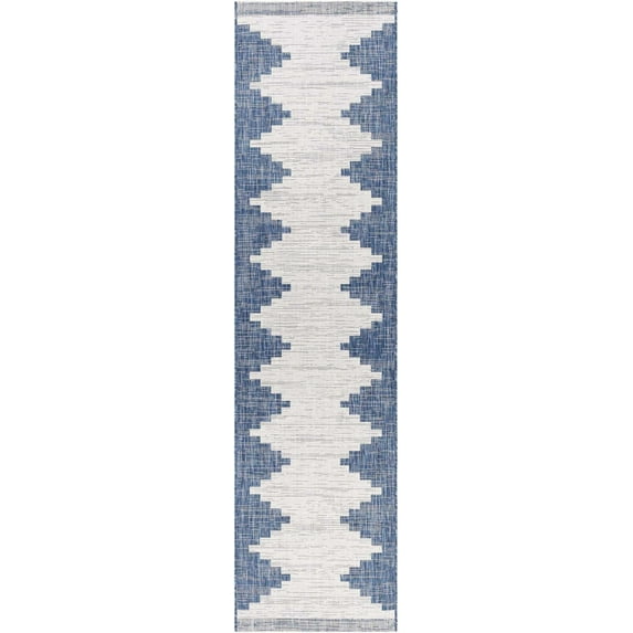 Hauteloom Djugun Outdoor Runner Rug - Outside Porch Patio Rug Carpet - Waterproof Rug - Geometric - Blue, Gray, Cream, Beige - 2'7" x 12'