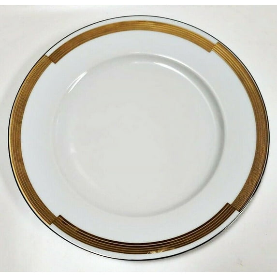 ITEM CONDITION: It is brand new. Actual item pictured, exactly what you will receive! Please see all pictures. Features: Make: Haviland Limoges Style: Cible Pattern: Diane, Gold & Bronze Geometric Bands Item: Dinner Plate Thin Rim Size: 10 7/8" D Hand Made In France Kiln Fired At 1,400 Degrees Celcius For 24 Hours Stamped With The Prestigious Haviland Limoges Hallmark Condition: New Formed from pure white Limoges Porcelain, Cible dinnerware features an array of geometric designs rendered in gold. Perfect for more modern settings. 5-Piece Place setting includes Dinner plate, Dessert Plate, Bread & Butter Plate, Tea cup & Tea Saucer. Unique forms and décors and a bold company mindset have made Haviland a leading maker of French porcelain for over 150 years. Haviland mixes tradition and modernity with classic re-editions and modern designs. For the passion of art and luxury, Haviland is the premier choice. The Haviland creative studio employed the great talent from such artists as Gauguin, Ribiere, Dufy, and Cocteau, drastically changing the direction of Haviland designs and firmly establishing Haviland pieces as works of art, more than mere dinnerware. These china pieces are brand new. We are selling these items individually. You can buy one or more. Make your own set with the colors that you like. We are happy to offer discount pricing for large purchases as well. We are happy to ship and if you are local you can contact us to arrange pick up too! We also have many other items for sale. Please follow our Store – we have a lot of new items and we offer great prices. We entertain offers on ALL our items so you can come and make your best offer! Almost all of our items are free shipping in the USA too!