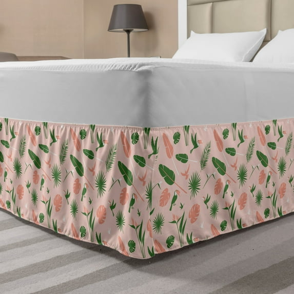 Hawaiian Bed Skirt, Jungle Setting of Humming Birds and Toucans in Soft Tones, Elastic Bedskirt Dust Ruffle Wrap Around for Bedding Decor, 4 Sizes, Blush Fern Green, by AmbesonneHawaiian Bed Skirt Jungle Setting Humming Birds Toucans Soft Tones Elastic Bedskirt Dust Ruffle Wrap Around Bedding Decor 4 Sizes Blush Fern Green AmHawaiian Bed Skirt Jungle Setting Humming Birds Toucans Soft Tones Elastic Bedskirt Dust Ruffle Wrap Around Bedding Decor 4 Sizes Blush Fern Green AmHawaiian Bed Skirt Jungle Setting Humming Birds Toucans Soft Tones Elastic Bedskirt Dust Ruffle Wrap Around Bedding Decor 4 Sizes Blush Fern Green AmHawaiian Bed Skirt Jungle Setting Humming Birds Toucans Soft Tones Elastic Bedskirt Dust Ruffle Wrap Around Bedding Decor 4 Sizes Blush Fern Green Am