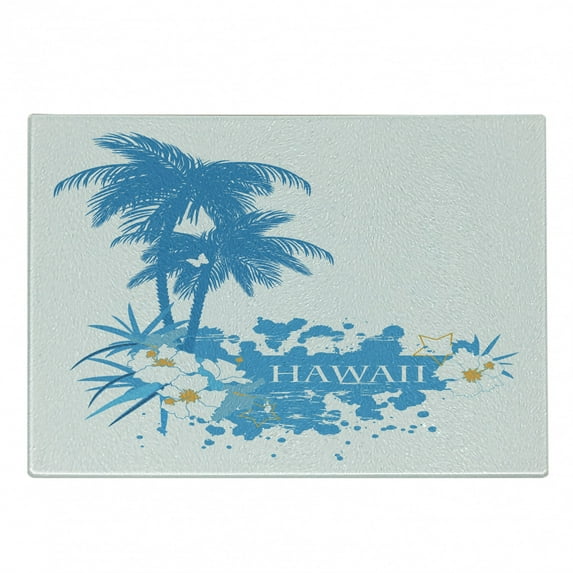 Hawaiian Cutting Board, Palm Trees Tropical Plants Flowers and Butterflies Silhouette Monochrome Art, Decorative Tempered Glass Cutting and Serving Board, Small Size, Aqua White, by AmbesonneHawaiian Cutting Board Palm Trees Tropical Plants Flowers Butterflies Silhouette Monochrome Art Decorative Tempered Glass Serving Small Size Aqua WhiHawaiian Cutting Board Palm Trees Tropical Plants Flowers Butterflies Silhouette Monochrome Art Decorative Tempered Glass Serving Large Size Aqua Whi