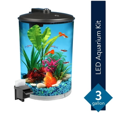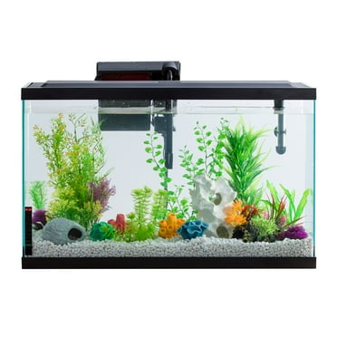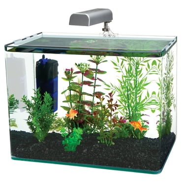 - 5 out of 5 stars review7/3/2016Great little aquairium.I have had this 5 gallon aquarium for about a month. Its made as one piece out of clear acrylic. It has a bow front and its squared off on the back. I put black grave with colored specks (called neon starry night) in the bottom which shows off the plants and fish very well. Got it at Walmart as well. The aquarium comes with the filter which seems to be adequate for the aquariums size. It has done a great job keeping my clean. I have 5 pretty large gold fish in it which I had previously in a different tank that I broke while cleaning. I'm glad this one is acrylic. I feed them about as much as they can clean up in about 1 minutes (small pinch) twice daily. The aquarium is still very clean after a month and the fish have grown considerably. T...Keith