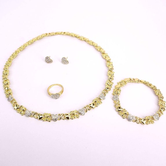 $2999current price $29.99HUGSKISSES Tennis Heart Icedout Mixed Piece Jewelry Sets, Necklace, Bracelet, Earrings, Ring, Model #30