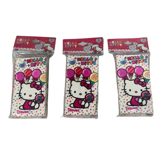 Hello Kitty Sanrio Pocket Tissues, Cotton Candy Scented, 10 count per package; THIS IS A 3 PACK; Great for any Hello Kitty Lover; Just Throw in your Backpack or Purse!