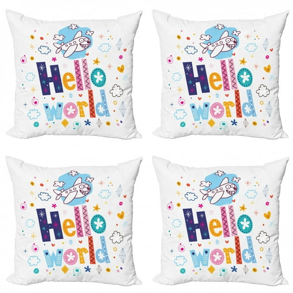 Hello World Throw Pillow Cushion Case Pack of 4, Childish Preschool Letters with Smiling Airplane Clouds Hears and Stars, Modern Accent Double-Sided Print, 4 Sizes, Multicolor, by AmbesonneHello World Throw Pillow Cushion Case Pack 4 Childish Preschool Letters Smiling Airplane Clouds Hears Stars Modern Accent Double Sided Print 4 SizesHello World Throw Pillow Cushion Case Pack 4 Childish Preschool Letters Smiling Airplane Clouds Hears Stars Modern Accent Double Sided Print 4 SizesHello World Throw Pillow Cushion Case Pack 4 Childish Preschool Letters Smiling Airplane Clouds Hears Stars Modern Accent Double Sided Print 4 SizesHello World Throw Pillow Cushion Case Pack 4 Childish Preschool Letters Smiling Airplane Clouds Hears Stars Modern Accent Double Sided Print 4 Sizes