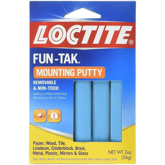 Loctite, Fun-Take, 2 OZ, Mounting Putty, A Reusable, Removable Adhesive That Is A Convenient Alternative For Tape, Tacks, Staples & Magnets In Home, School & Office, Ideal For Hanging Any Lightweight Item To A Smooth Or Hard Surface, Is Unaffected By Moisture & Will Not Dry Out, For Interior Use Only, Recommended For Hanging Children's Artwork On Refrigerator, Stick Memos To Phone, Stick Recipes, Party Decorations & Greeting Cards To Wall, Ideal For Stopping Vibrations Of Rattling Windows, Secure Candlesticks, Paper Tablecloths, Shelf Paper & Drawer Linings, Secure Desk Blotters & Accessories, Bonds Items To Most Smooth Surfaces, Including Blackboards, Wood, Plaster, Brick, Glass, Tile Metal, Formica, Porcelain, Linoleum & Concrete.