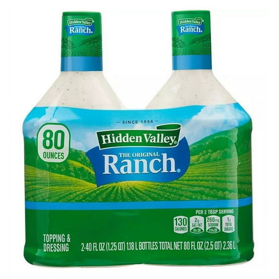 15 out of 5 Stars. 1 reviewsSave withShipping, arrives tomorrowHidden Valley Original Ranch Dressing, 2-Pack (40 Oz Each) – Easy-Open Flip Cap, Gluten-Free, Versatile for Dressing & Dipping $24.95