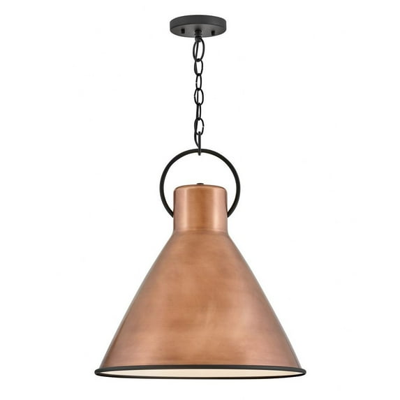 Hinkley Lighting-3555AP-Collection: Winnie, Material: Steel, Finish Color: Antique Copper, Width: 11.31", Height: 21.5", Length: 18", Chain Length: 60", Lamping Type: LED, Number Of Bulbs: 1, Wattage: 12 Watts, Dimmable: Yes, Moisture Rating: Dry Rated, Desc: The profile is simple, hardworking and meant to reflect the farmhouse style it complements so well. A metal shade in a variety of finishes, featuring a bottom ring and an oversized loop in Distressed Black. Wiring is threaded through the loop instead of being exposed, which ensures the look remains clean, casual and tasteful. Suitable for use in dry (indoor) locations as defined by NEC and CEC. Meets United States UL Underwriters Laboratories & CSA Canadian Standards Association Product Safety Standards / This chain or cable hung fixture may be installed on any sloped ceiling / Merging the best of traditional and modern elements, with a sophisticated and streamlined silhouette perfect for any space / Gleaming copper finish that ages naturally over time Mounting: Install Slope Ceiling - Chain or cable hung,-Winnie - 12W 1 LED Medium Pendant In Traditional Style-21.5 Inches Tall and 18 Inches Wide