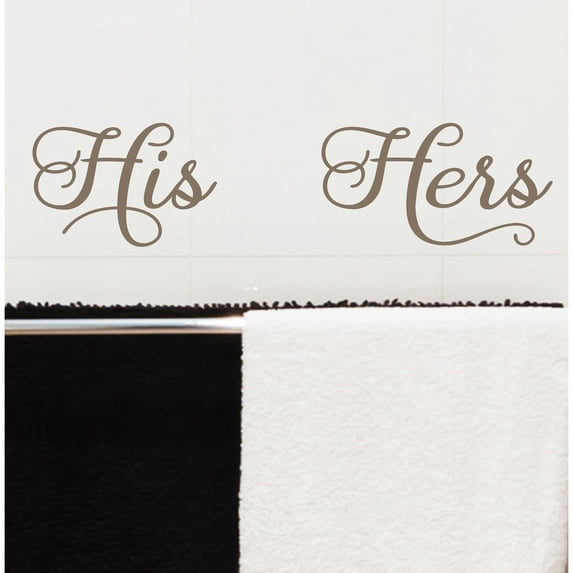 His and Hers Vinyl Lettering Wall Decal Sticker Bathroom Decals Size: 6"H x 9"L, 6"H x 11"L - Color: Metallic Bronze