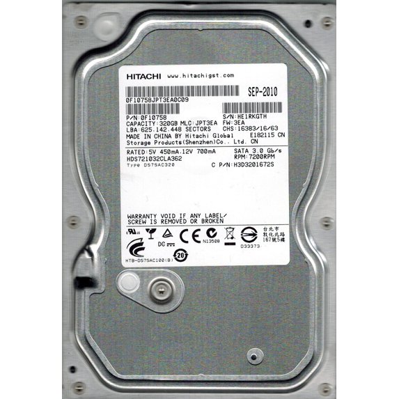 Hitachi HDS721032CLA362 P/N: 0F10758 MLC: JPT3EA 320GB